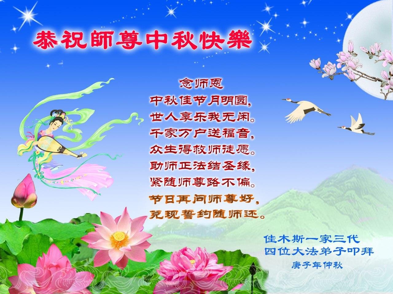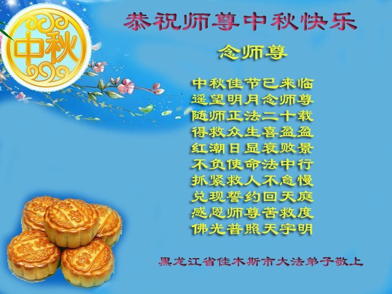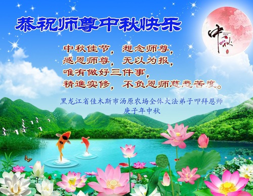 Falun Dafa Practitioners from Jiamusi City Respectfully Wish Master Li Hongzhi a Happy Mid-Autumn Festival (21 Greetings)