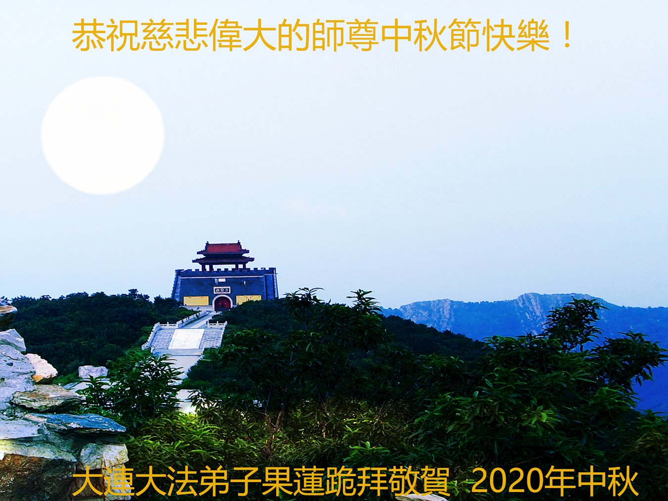 Falun Dafa Practitioners from Dalian City Respectfully Wish Master Li Hongzhi a Happy Mid-Autumn Festival (21 Greetings)
