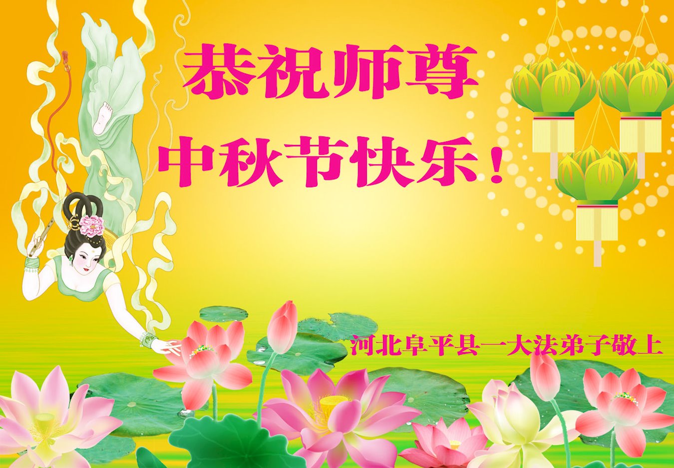 Falun Dafa Practitioners from Baoding City Respectfully Wish Master Li Hongzhi a Happy Mid-Autumn Festival (21 Greetings)