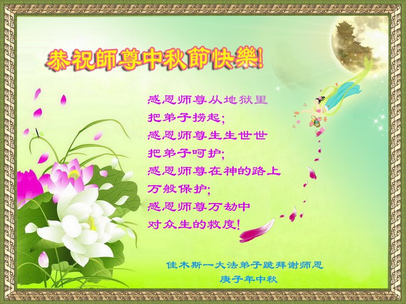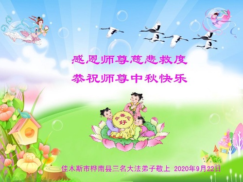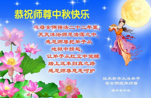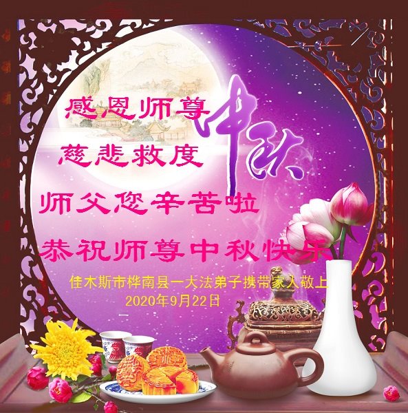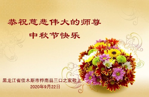 Falun Dafa Practitioners from Jiamusi City Respectfully Wish Master Li Hongzhi a Happy Mid-Autumn Festival (22 Greetings)