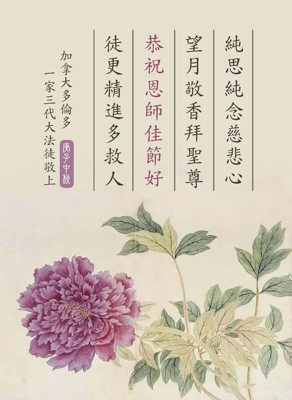 (Minghui.org) Practitioners in the following places in Canada wish Master Li a Happy Mid-Autumn Festival: