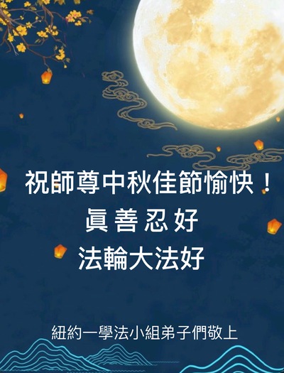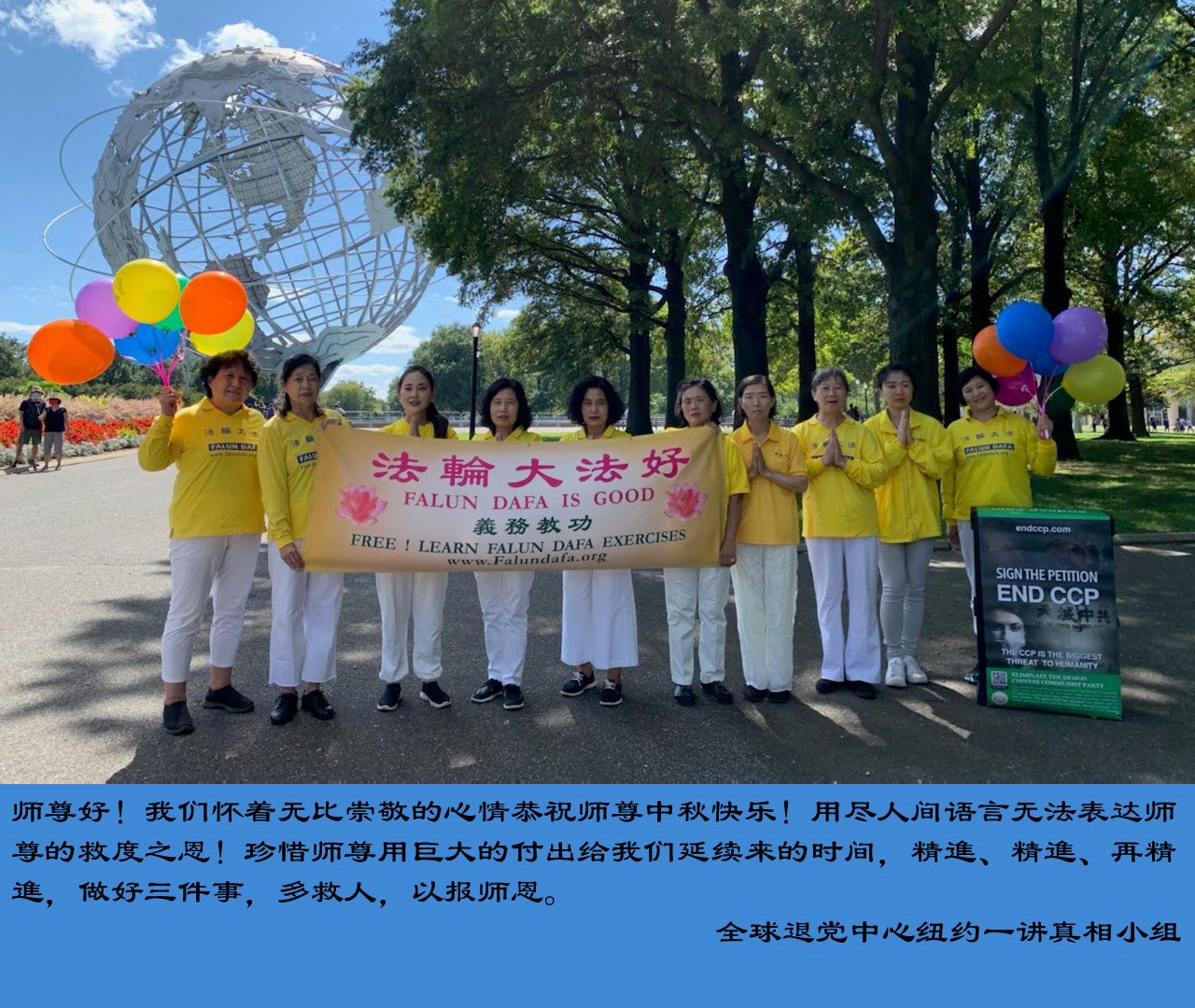 (Minghui.org) Practitioners in the following places in the New York Area express their gratitude to Master Li for his compassionate salvation and wish Master a Happy Mid-Autumn Festival: