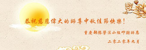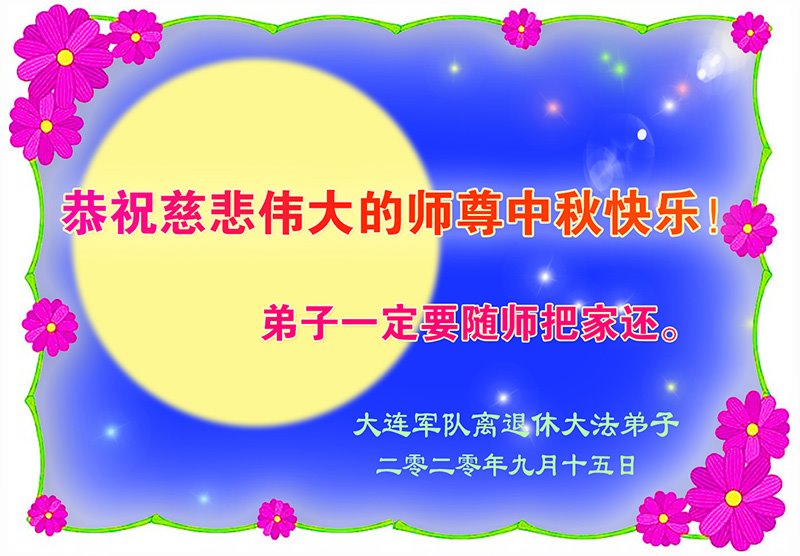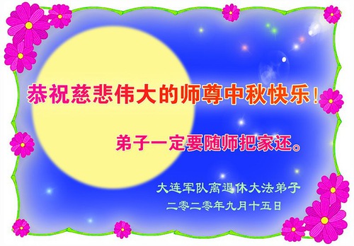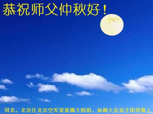 (Minghui.org) To celebrate the Moon Festival, also known as the Mid-Autumn Festival, Falun Dafa practitioners in China send their heartfelt greetings to the founder of the practice, Master Li Hongzhi, to wish him a happy holiday.