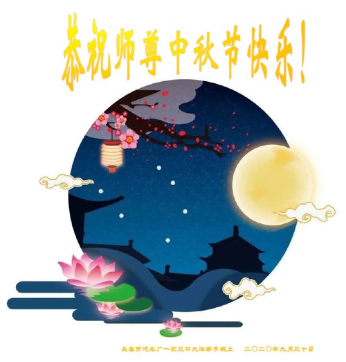 (Minghui.org) Falun Dafa practitioners in China have sent their heartfelt greetings to the founder of the practice, Master Li Hongzhi, to wish him a Happy Moon Festival, also known as the Mid-Autumn Festival.