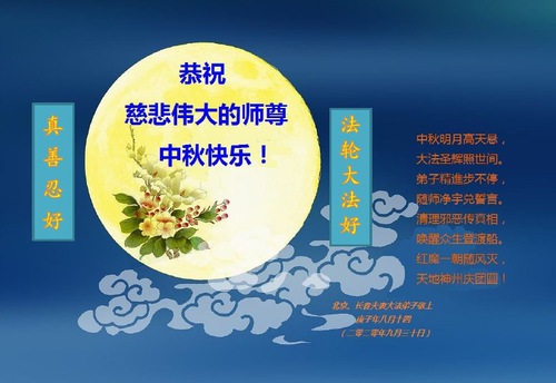 Falun Dafa Practitioners from Beijing Respectfully Wish Master Li Hongzhi a Happy Mid-Autumn Festival (26 Greetings)