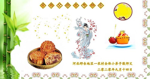 (Minghui.org) At the special occasion of the Mid-Autumn Festival, many Falun Dafa practitioners around the world are sending their heartfelt wishes to Master Li Hongzhi and wishing him a happy holiday.