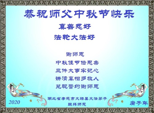 Falun Dafa Practitioners from Hubei Province Respectfully Wish Master Li Hongzhi a Happy Mid-Autumn Festival (27 Greetings)