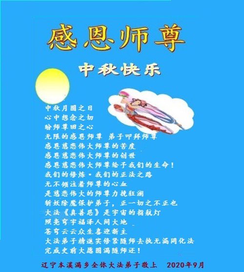 Falun Dafa Practitioners from China Wish Revered Master a Happy Mid-Autumn Festival!