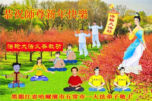 Falun Dafa Practitioners from Harbin City Respectfully Wish Master Li Hongzhi a Happy New Year (18 Greetings)
