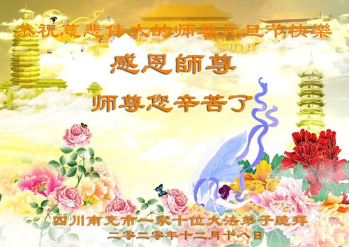 Falun Dafa Practitioners from Sichuan Respectfully Wish Master Li Hongzhi a Happy New Year (18 Greetings)