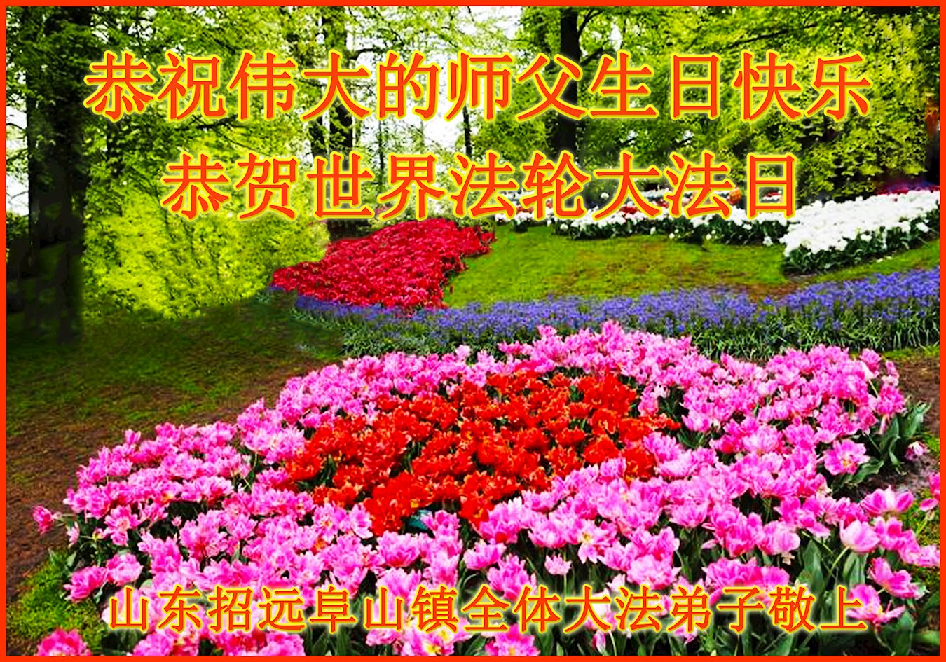 Falun Dafa Practitioners from Shandong Wish Revered Master a Happy Birthday and Celebrate World Falun Dafa Day!