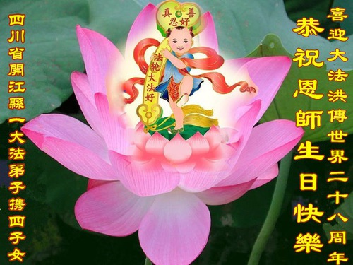 Falun Dafa Practitioners from Sichuan Wish Revered Master a Happy Birthday and Celebrate World Falun Dafa Day!