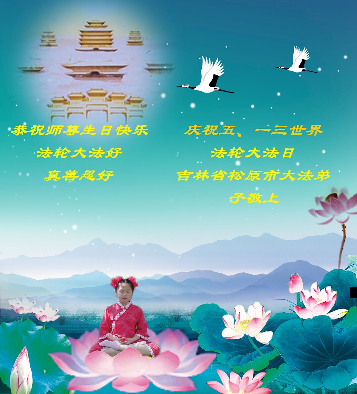 Falun Dafa Practitioners from Jilin Province Celebrate World Falun Dafa Day and Respectfully Wish Master Li Hongzhi a Happy Birthday (19 Greetings)