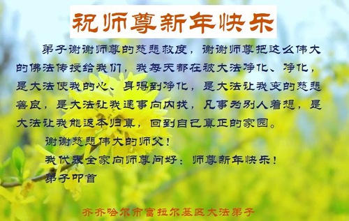 Falun Dafa Practitioners from Qiqihar City Respectfully Wish Master Li Hongzhi a Happy New Year (19 Greetings)
