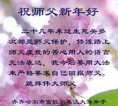Falun Dafa Practitioners from Qiqihar City Respectfully Wish Master Li Hongzhi a Happy New Year (19 Greetings)