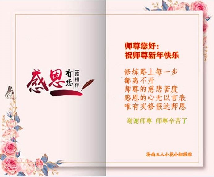 Falun Dafa Practitioners from Jinan City Respectfully Wish Master Li Hongzhi a Happy New Year (23 Greetings)