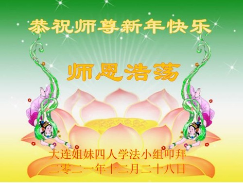 Falun Dafa Practitioners from Dalian City Respectfully Wish Master Li Hongzhi a Happy New Year (22 Greetings)