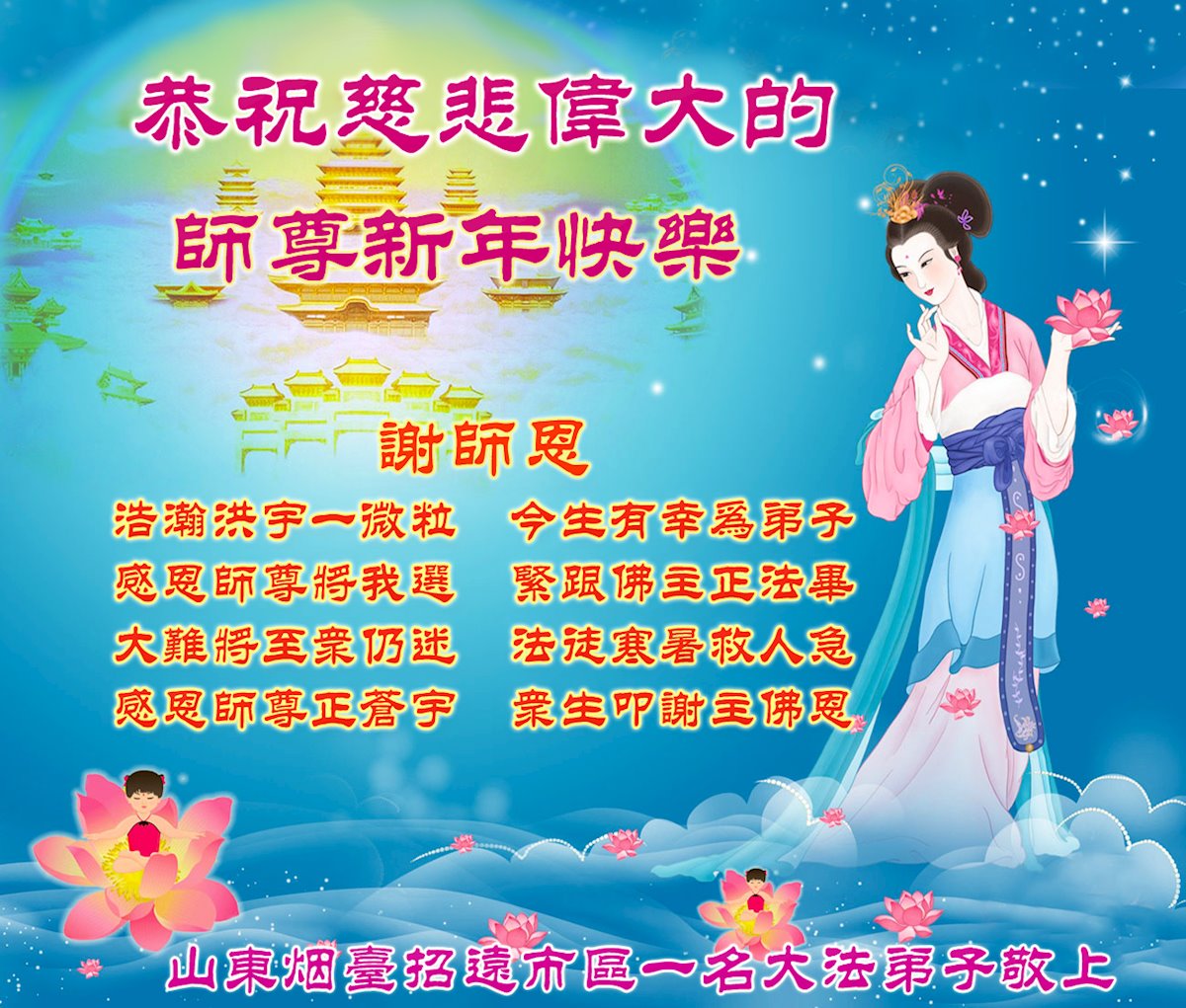 Falun Dafa Practitioners from Shandong Province Wish Revered Master a Happy New Year!