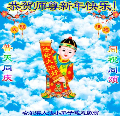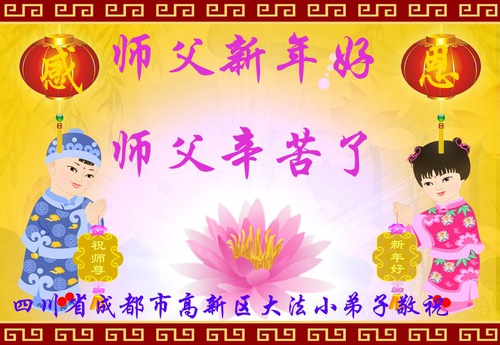 A young practitioner and his little brother wrote, “Greetings, Master! Happy Chinese New Year! My little brother and I will listen to Master’s words, study the Fa well, improve our characters, and be worthy disciples. Thank you, Master!”