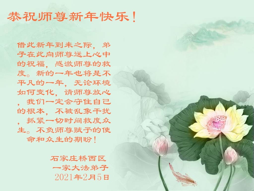 Falun Dafa Practitioners from Shijiazhuang City Respectfully Wish Master Li Hongzhi a Happy Chinese New Year (28 Greetings)