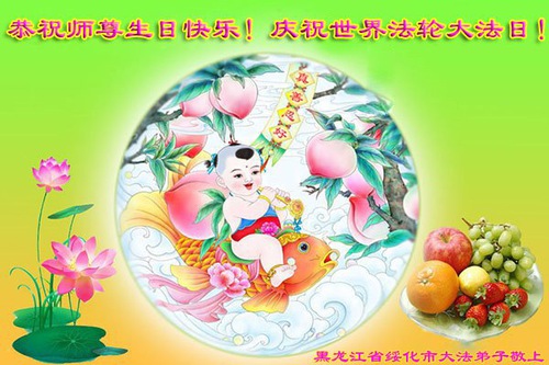 Falun Dafa Practitioners from Heilongjiang Wish Revered Master a Happy Birthday and Celebrate World Falun Dafa Day!