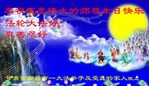 Falun Dafa Practitioners from Gansu Province Celebrate World Falun Dafa Day and Respectfully Wish Master Li Hongzhi a Happy Birthday (25 Greetings)