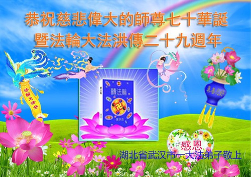 Falun Dafa Practitioners from Hubei Province Celebrate World Falun Dafa Day and Respectfully Wish Master Li Hongzhi a Happy Birthday (21 Greetings)