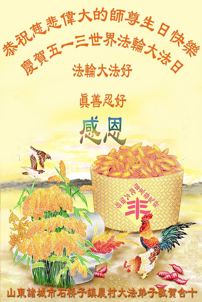 (Minghui.org) In honor of World Falun Dafa Day, practitioners who live in China’s rural areas are sending their greetings to wish revered Master Li Hongzhi a Happy Birthday and to celebrate the 29th anniversary of Falun Dafa’s public introduction.