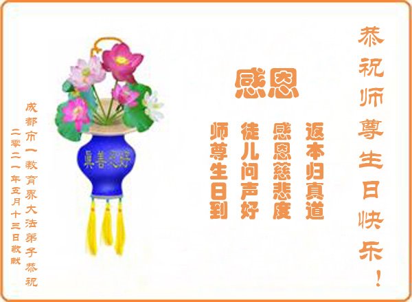 In honor of World Falun Dafa Day, May 13, Falun Dafa practitioners send their heartfelt good wishes to the Minghui website to celebrate the anniversary of this historic day and express their profound gratitude to Master Li.