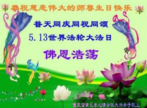 Falun Dafa Practitioners from Chongqing Celebrate World Falun Dafa Day and Respectfully Wish Master Li Hongzhi a Happy Birthday (18 Greetings)