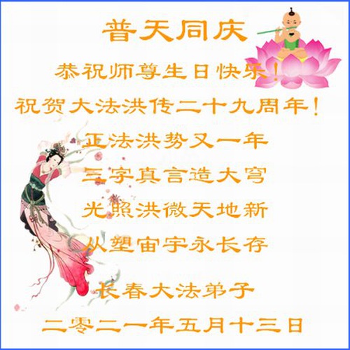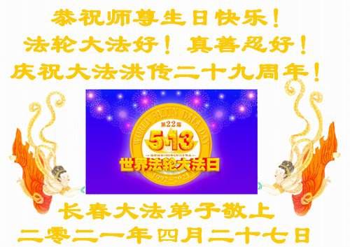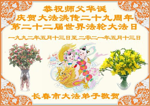 Falun Dafa Practitioners from Changchun City Celebrate World Falun Dafa Day and Respectfully Wish Master Li Hongzhi a Happy Birthday (19 Greetings)