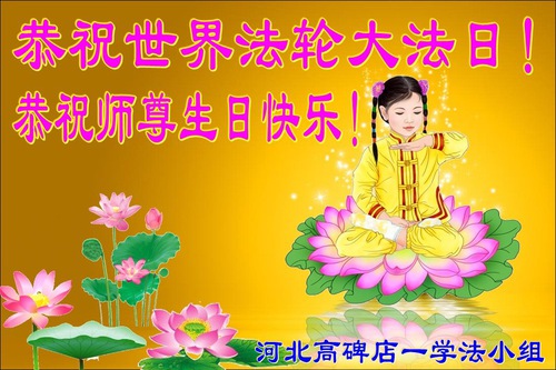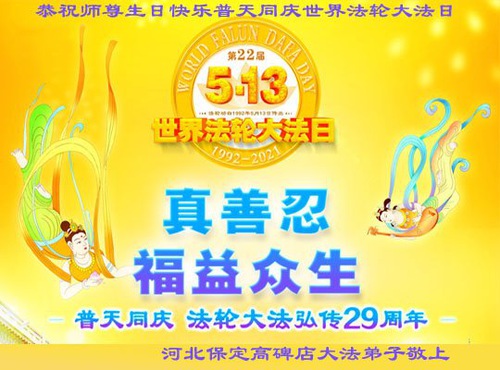 Falun Dafa Practitioners from Baoding City Wish Revered Master a Happy Birthday and Celebrate World Falun Dafa Day!