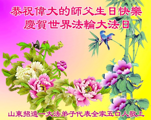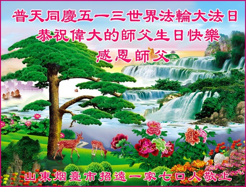 Falun Dafa Practitioners from Shandong Wish Revered Master a Happy Birthday and Celebrate World Falun Dafa Day!