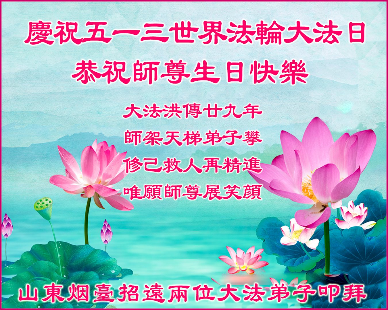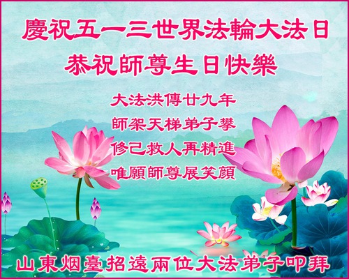 Falun Dafa Practitioners from Shandong Province Celebrate World Falun Dafa Day and Respectfully Wish Master Li Hongzhi a Happy Birthday (18 Greetings)