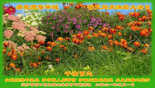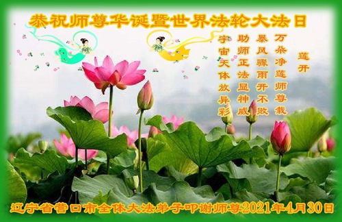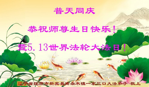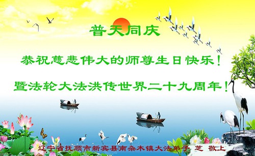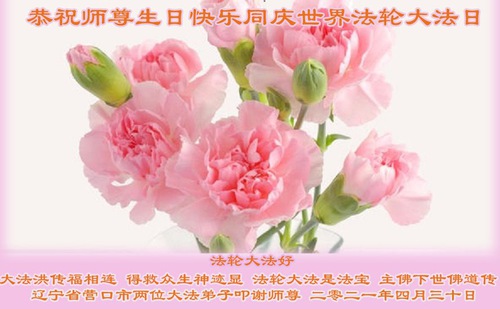 Falun Dafa Practitioners from Liaoning Wish Revered Master a Happy Birthday and Celebrate World Falun Dafa Day!