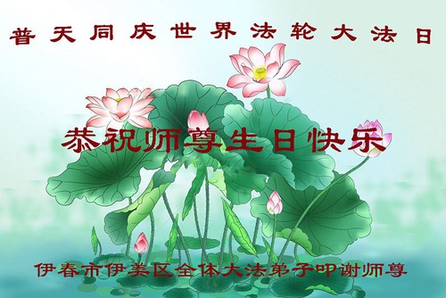 Falun Dafa Practitioners from Heilongjiang Wish Revered Master a Happy Birthday and Celebrate World Falun Dafa Day!