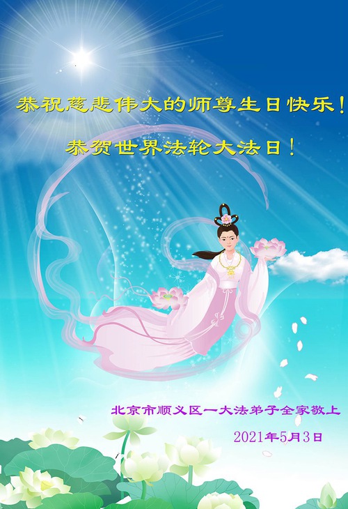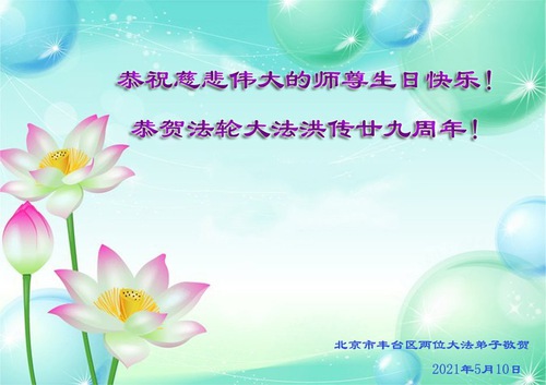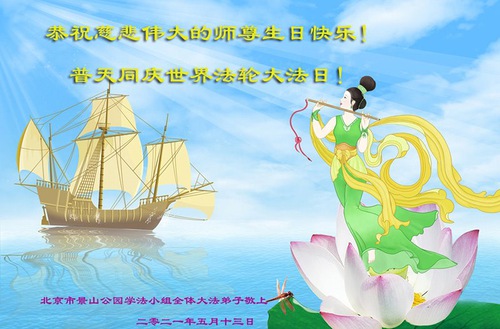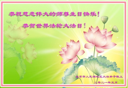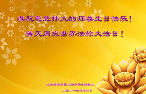 Falun Dafa Practitioners from Beijing Celebrate World Falun Dafa Day and Respectfully Wish Master Li Hongzhi a Happy Birthday (19 Greetings)