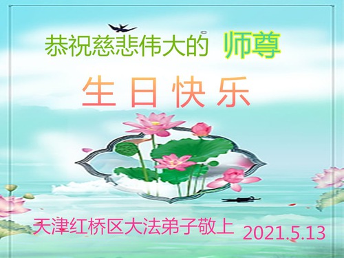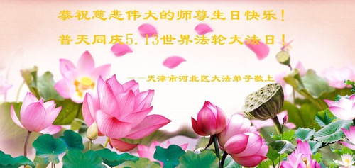 Falun Dafa Practitioners from Tianjin Wish Revered Master a Happy Birthday and Celebrate World Falun Dafa Day!