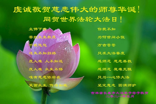 Falun Dafa Practitioners from Changchun City Celebrate World Falun Dafa Day and Respectfully Wish Master Li Hongzhi a Happy Birthday (22 Greetings)