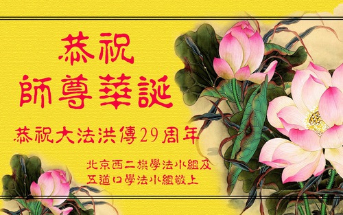 Falun Dafa Practitioners from Beijing Wish Revered Master a Happy Birthday and Celebrate World Falun Dafa Day!