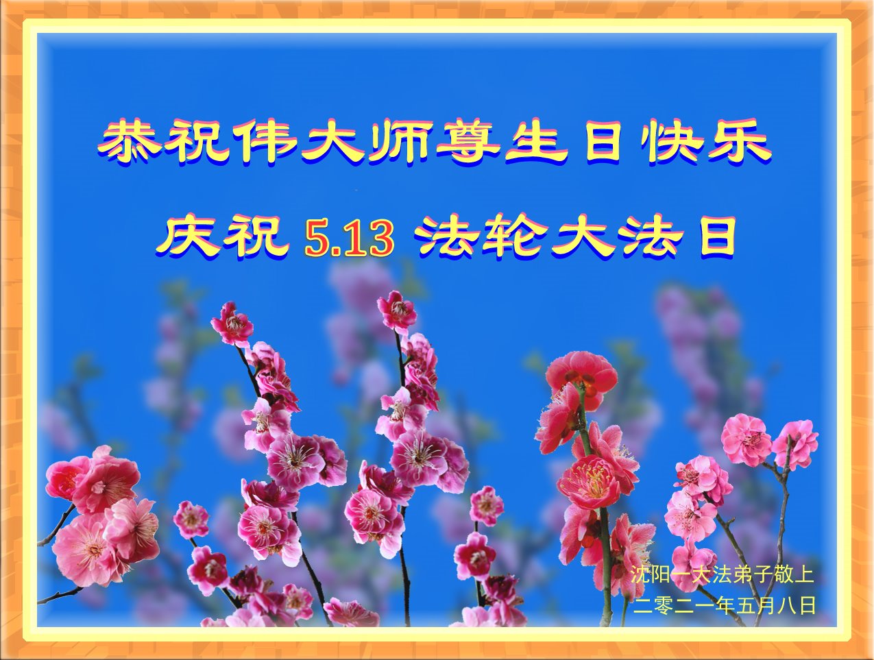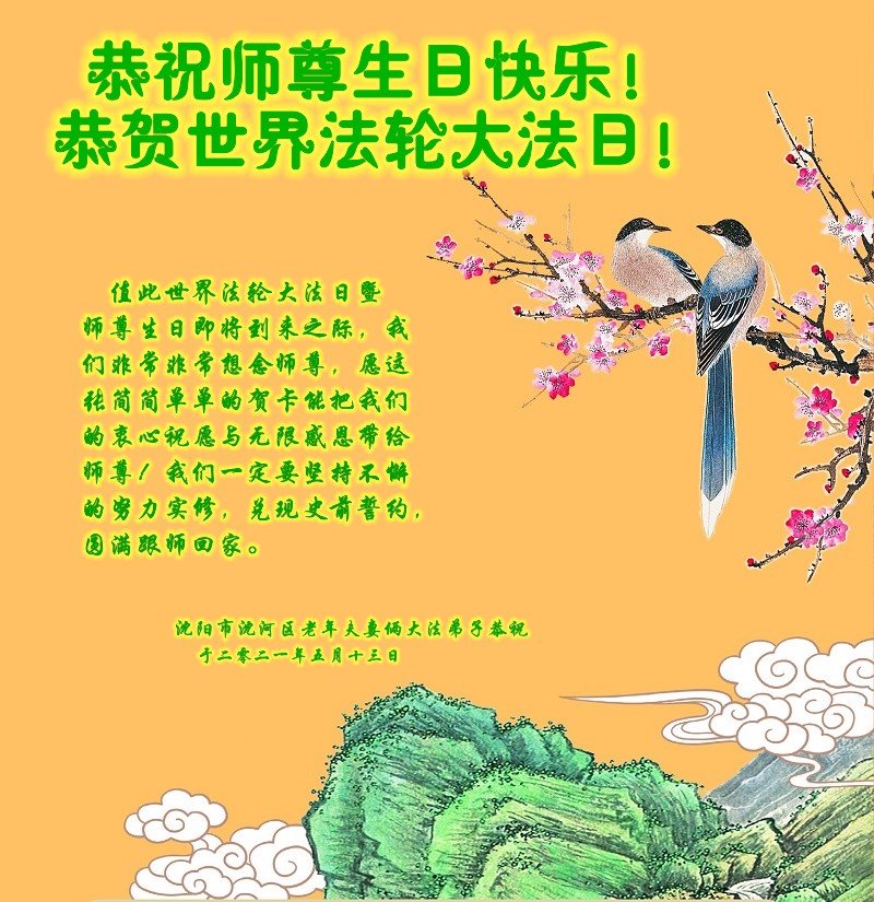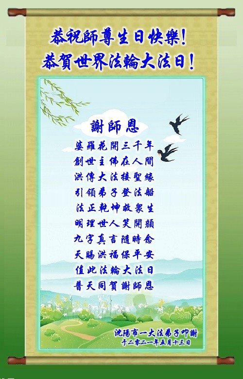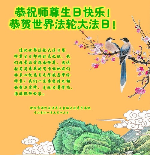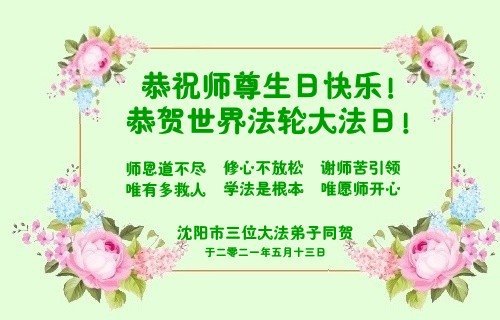 Falun Dafa Practitioners from Shenyang City Celebrate World Falun Dafa Day and Respectfully Wish Master Li Hongzhi a Happy Birthday (22 Greetings)