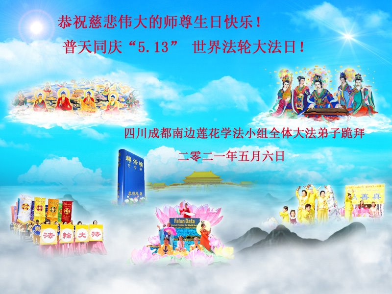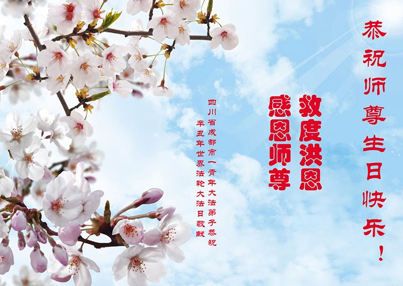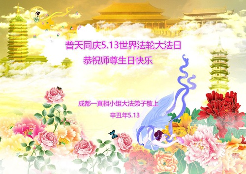 Falun Dafa Practitioners from Chengdu City Celebrate World Falun Dafa Day and Respectfully Wish Master Li Hongzhi a Happy Birthday (27 Greetings)