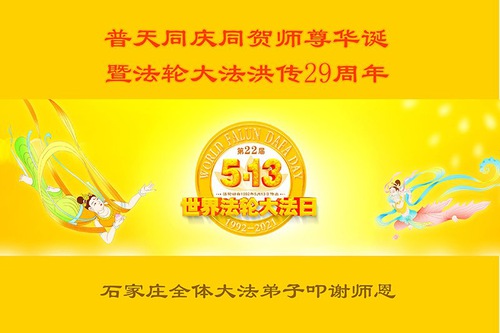 Falun Dafa Practitioners from Shijiazhuang City Celebrate World Falun Dafa Day and Respectfully Wish Master Li Hongzhi a Happy Birthday (26 Greetings)