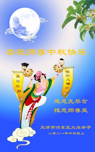 Falun Dafa Practitioners from Tianjin Wish Revered Master a Happy Mid-Autumn Festival!