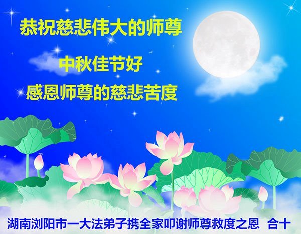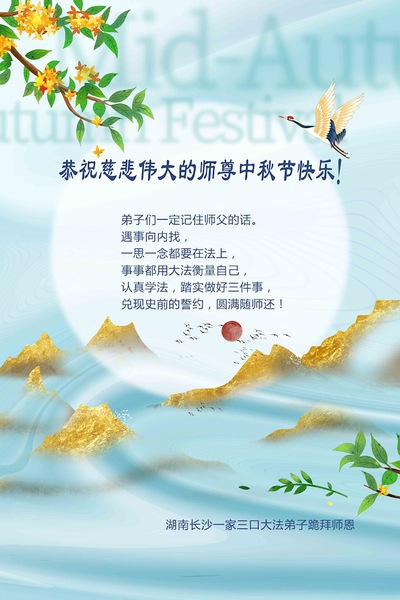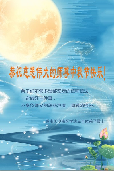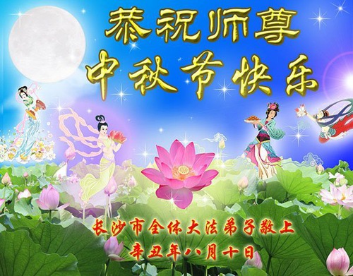 Falun Dafa Practitioners from Changsha City Respectfully Wish Master Li Hongzhi a Happy Mid-Autumn Festival (22 Greetings)
