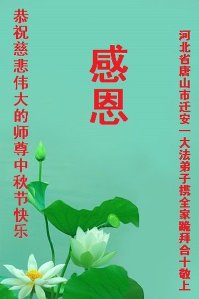 Falun Dafa Practitioners from Tangshan City Respectfully Wish Master Li Hongzhi a Happy Mid-Autumn Festival (24 Greetings)