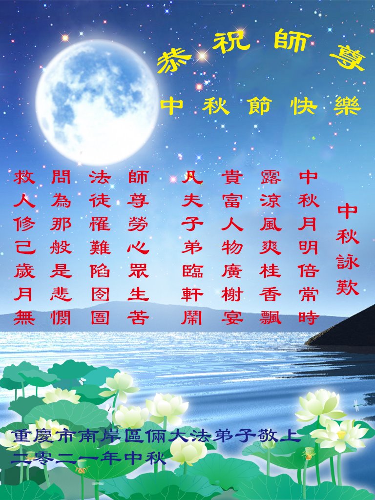 Falun Dafa Practitioners from Chongqing Respectfully Wish Master Li Hongzhi a Happy Mid-Autumn Festival (20 Greetings)