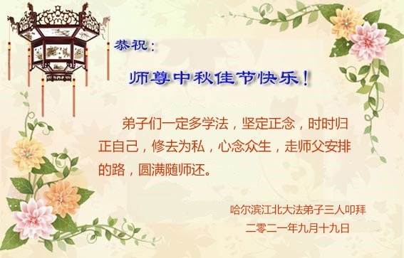 Falun Dafa Practitioners from Harbin City Respectfully Wish Master Li Hongzhi a Happy Mid-Autumn Festival (26 Greetings)