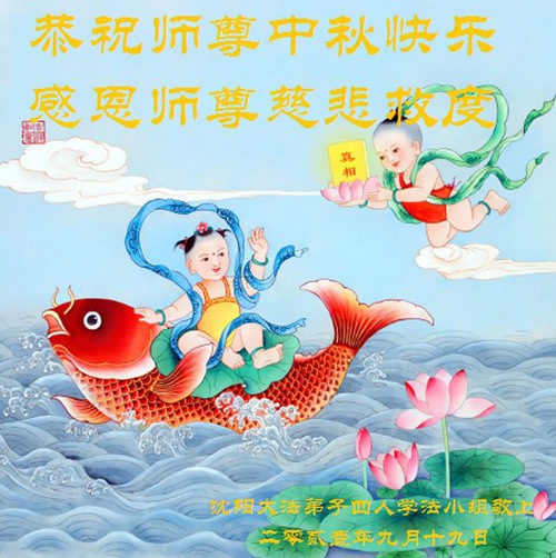 Falun Dafa Practitioners from Shenyang City Respectfully Wish Master Li Hongzhi a Happy Mid-Autumn Festival (24 Greetings)