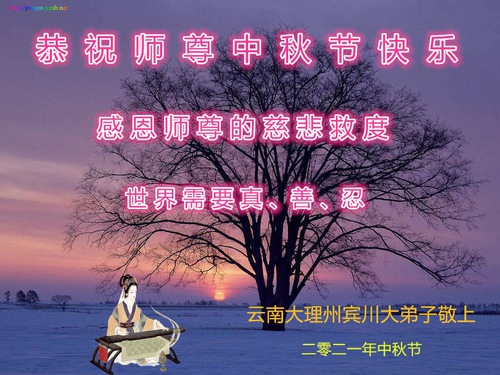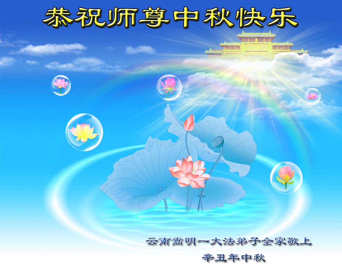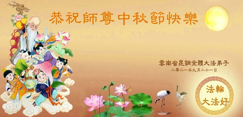 Falun Dafa Practitioners from Yunnan Province Respectfully Wish Master Li Hongzhi a Happy Mid-Autumn Festival (21 Greetings)